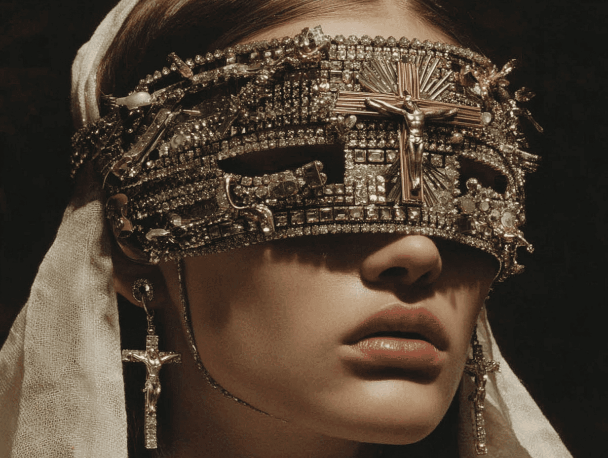 A dramatic chiaroscuro-inspired fashion study merging classical painting aesthetics with contemporary editorial styling.