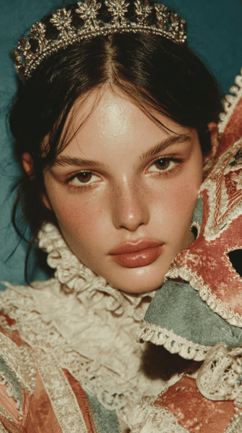 A painterly fashion tableau using deep shadow and sculpted light to create timeless editorial drama.