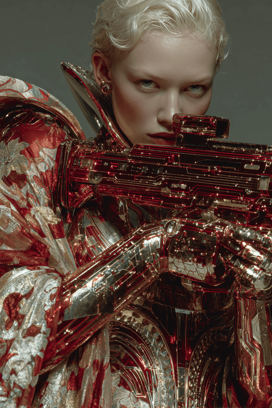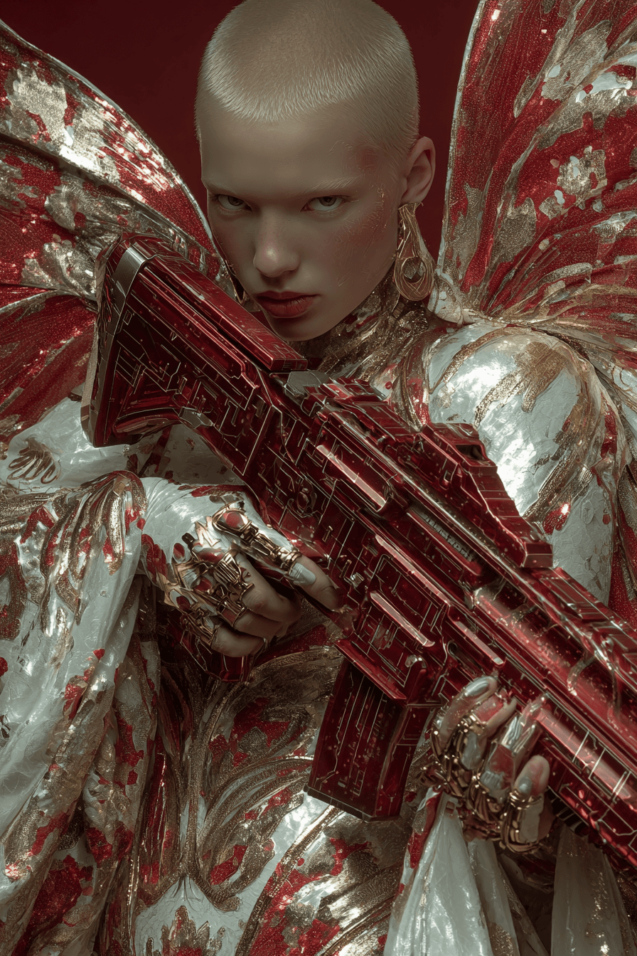 A futuristic reinterpretation of Renaissance form, light, and symbolism through digital textures and speculative visual design.